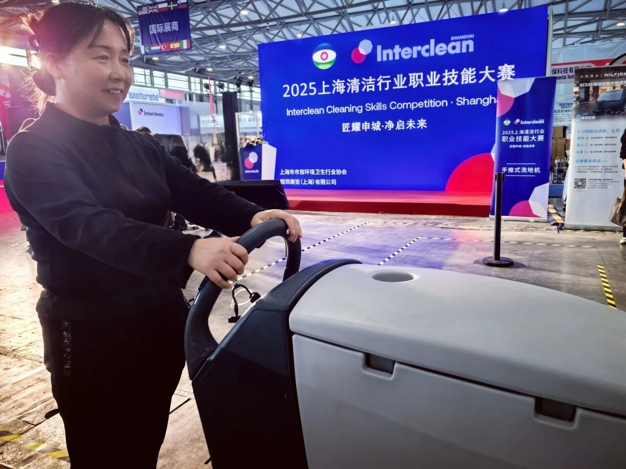 上海蓝云选派的员工何琴,在当天下午举行的手推式洗地机大赛中,凭借扎实的专业技能和稳定的现场发挥,从众多参赛选手中脱颖而出,最终荣获季军佳绩!