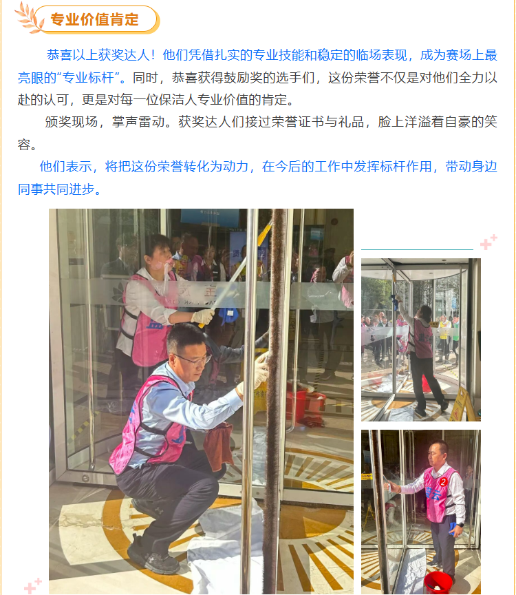 为提升服务品质、激发团队活力,“技能赛场展专业,蓝云达人耀风采——2025上海蓝云保洁技能比武竞赛”于11月14日在总部顺利举办,全体保洁达人们以技为刃,在赛场之上书写了属于自己的专业篇章。