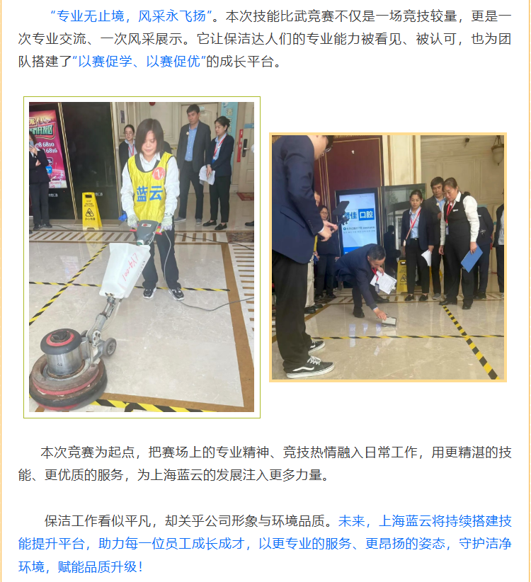 当专业成为底气,当技能绽放光芒,一场属于蓝云保洁人的“硬核比拼”正式开启!